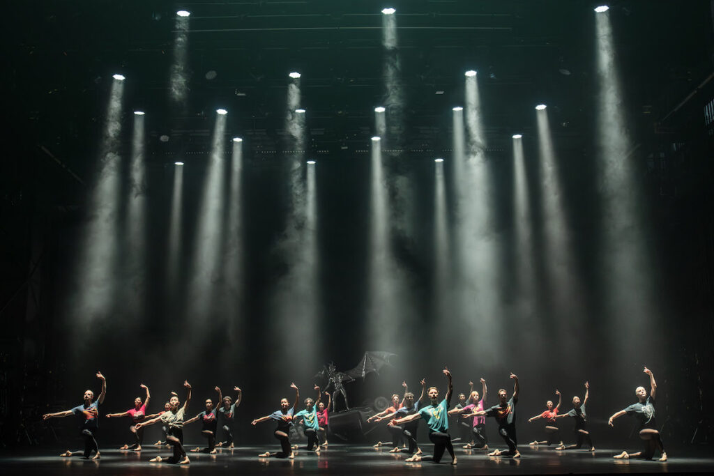 Act III, ‘Everybody is a Fan’ aims to embody the Black Sabbath legacy.  Danced on a bare stage, wings stripped, it’s choreographed by the vastly experienced Pontus Lidberg, the dancers in colourful T-shirts performing around a large effigy of a winged demon atop an overturned 1970s car (Designer Alexandre Arrechea)